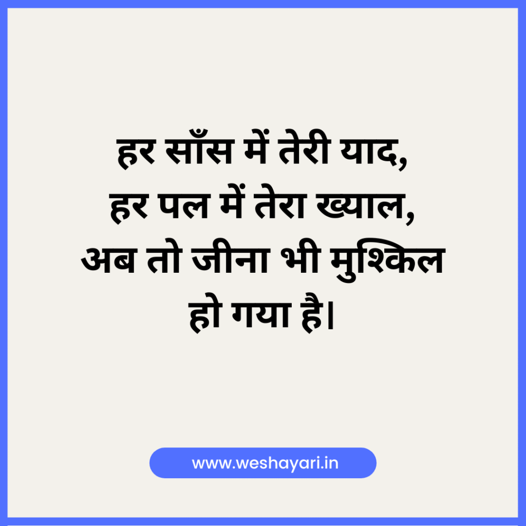 7. हर साँस में तेरी याद, हर पल में तेरा ख्याल, अब तो जीना भी मुश्किल हो गया है।