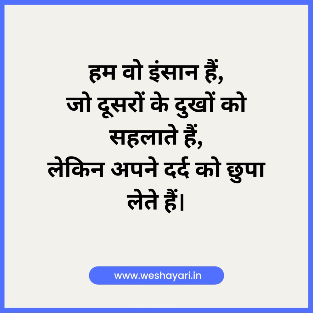 10. हम वो इंसान हैं, जो दूसरों के दुखों को सहलाते हैं, लेकिन अपने दर्द को छुपा लेते हैं।