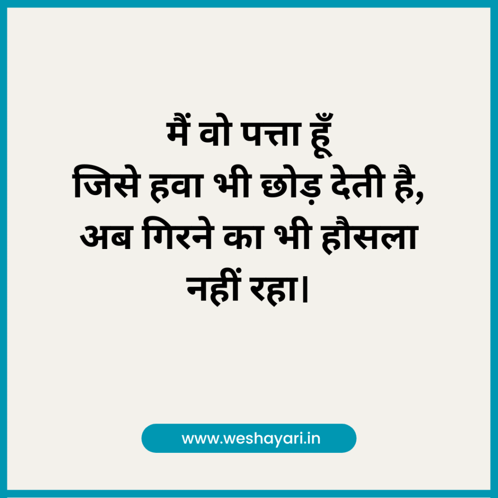 2. मैं वो पत्ता हूँ जिसे हवा भी छोड़ देती है, अब गिरने का भी हौसला नहीं रहा।