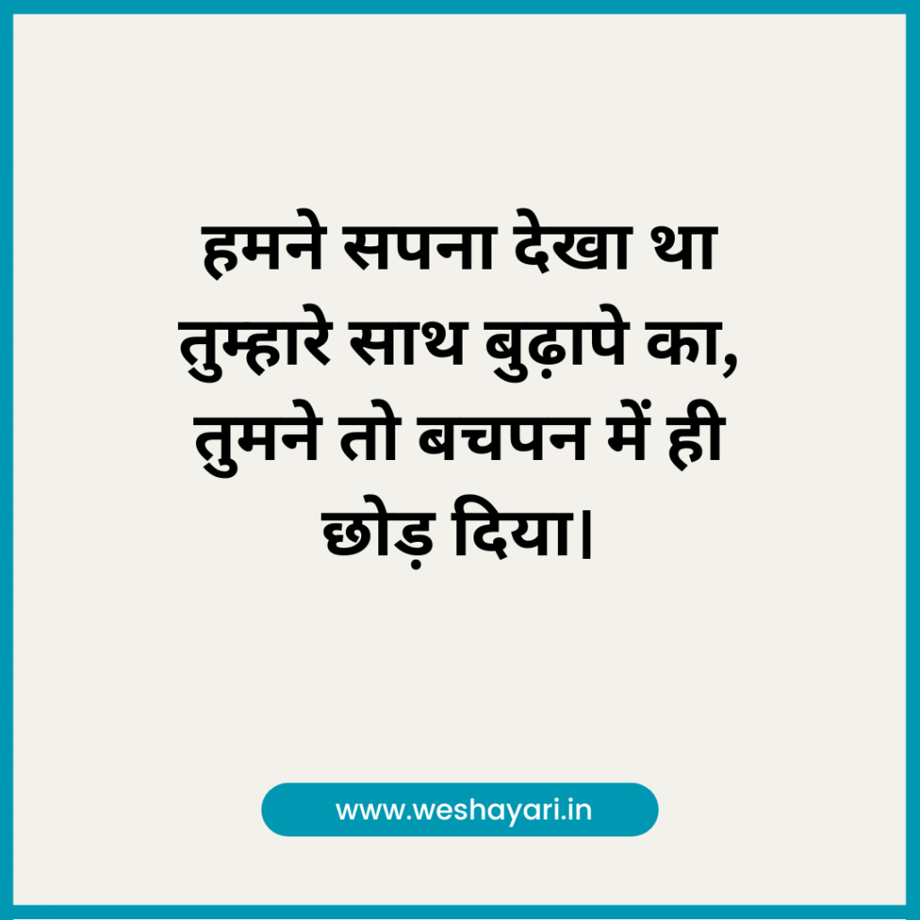 3. हमने सपना देखा था तुम्हारे साथ बुढ़ापे का, तुमने तो बचपन में ही छोड़ दिया।