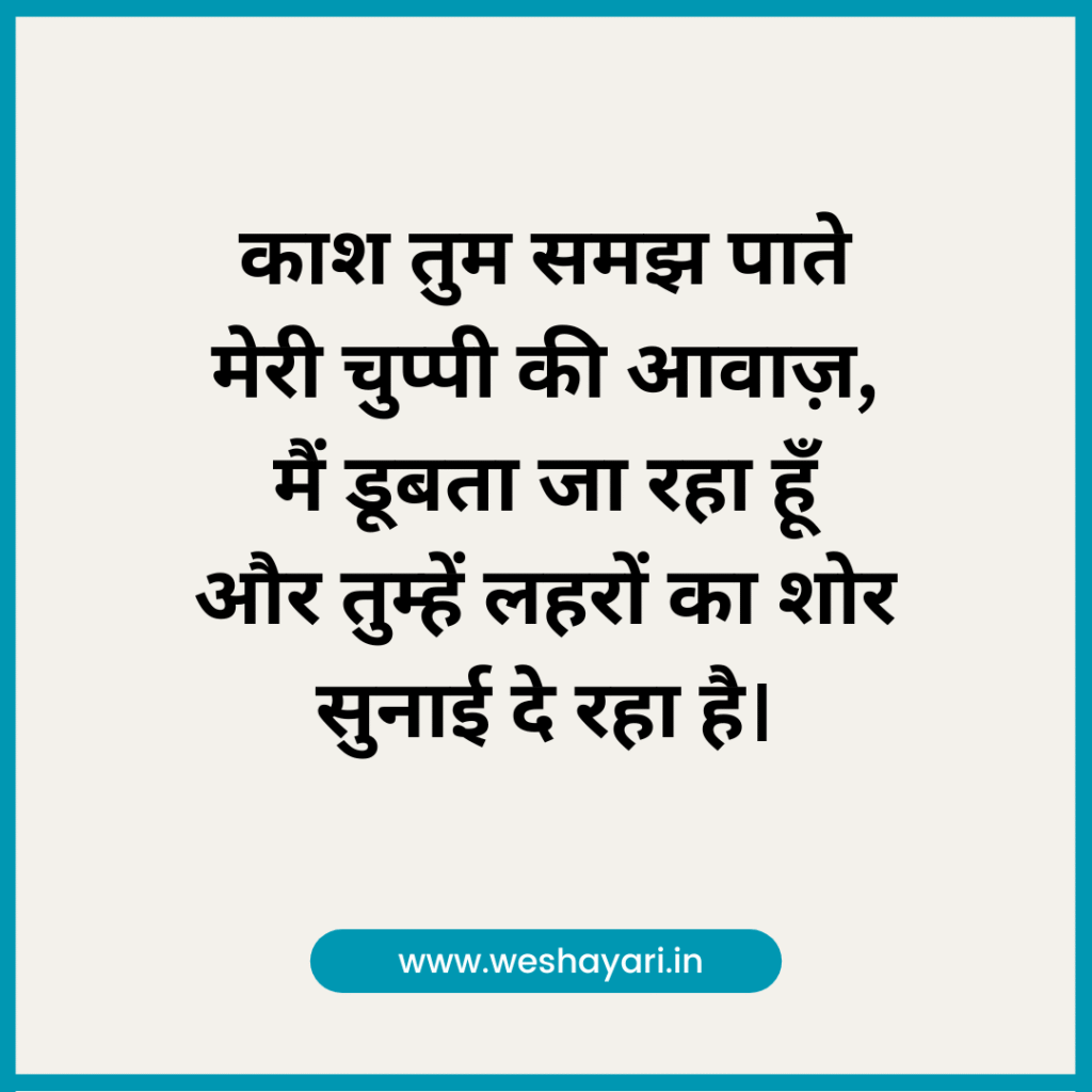 4. काश तुम समझ पाते मेरी चुप्पी की आवाज़, मैं डूबता जा रहा हूँ और तुम्हें लहरों का शोर सुनाई दे रहा है।