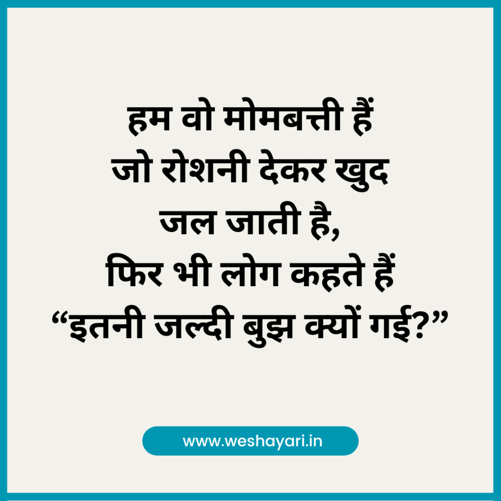 5. हम वो मोमबत्ती हैं जो रोशनी देकर खुद जल जाती है, फिर भी लोग कहते हैं – “इतनी जल्दी बुझ क्यों गई?”