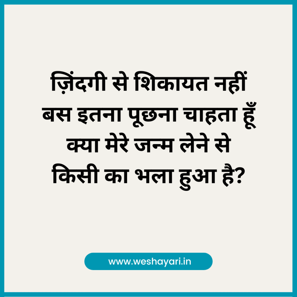 6. ज़िंदगी से शिकायत नहीं बस इतना पूछना चाहता हूँ – क्या मेरे जन्म लेने से किसी का भला हुआ है?