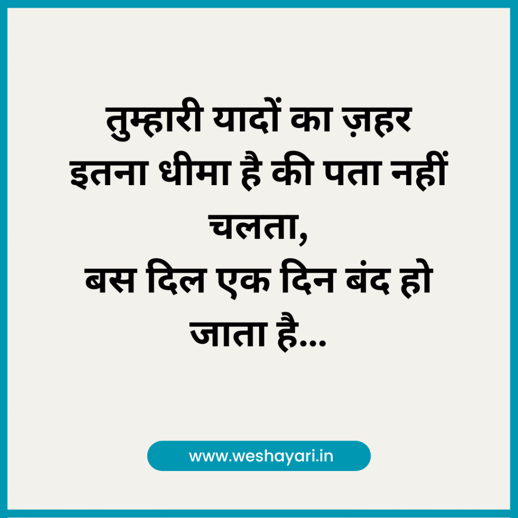 1. तुम्हारी यादों का ज़हर इतना धीमा है की पता नहीं चलता, बस दिल एक दिन बंद हो जाता है…